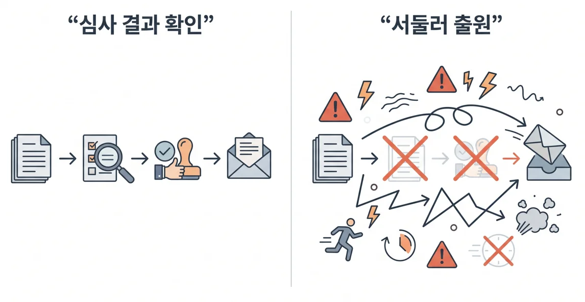 급하게 서두르면 출원인에게 손해가 생깁니다.